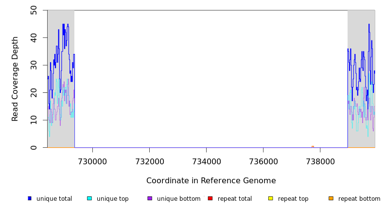 | seq id | start | end | size | ←reads | reads→ | gene | description | |||