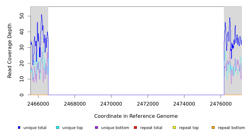 | seq id | start | end | size | ←reads | reads→ | gene | description | |||
