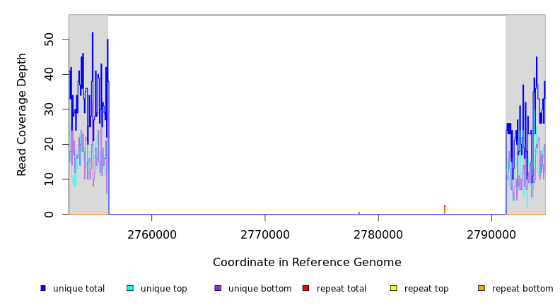 | seq id | start | end | size | ←reads | reads→ | gene | description | |||