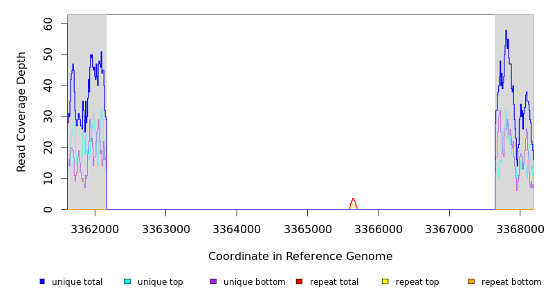 | seq id | start | end | size | ←reads | reads→ | gene | description | |||