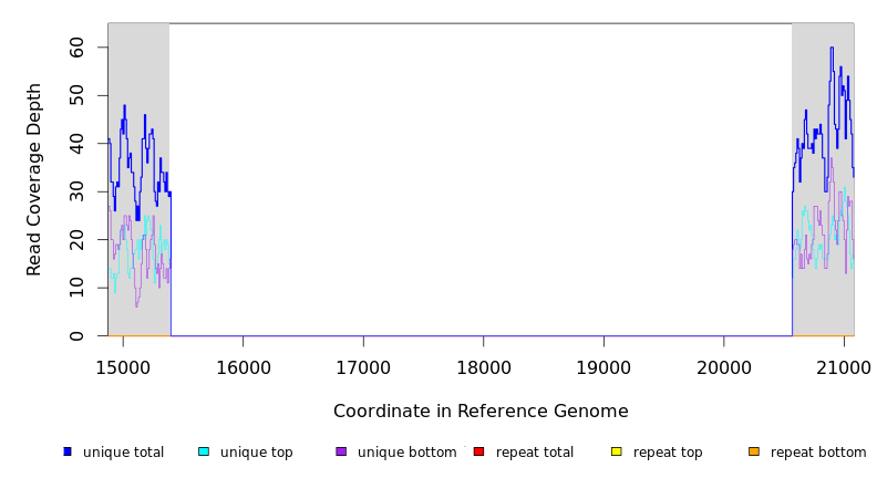 | seq id | start | end | size | ←reads | reads→ | gene | description | |||