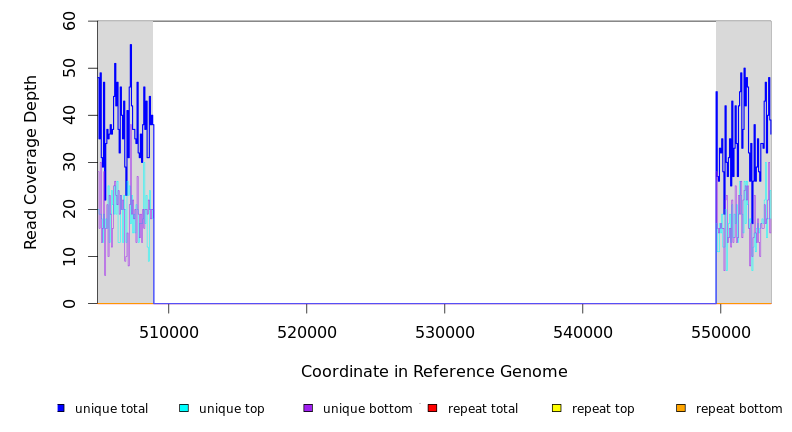 | seq id | start | end | size | ←reads | reads→ | gene | description | |||