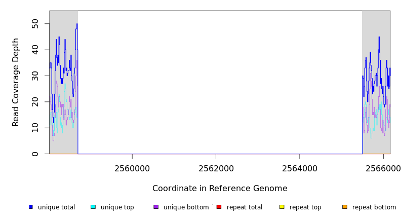 | seq id | start | end | size | ←reads | reads→ | gene | description | |||