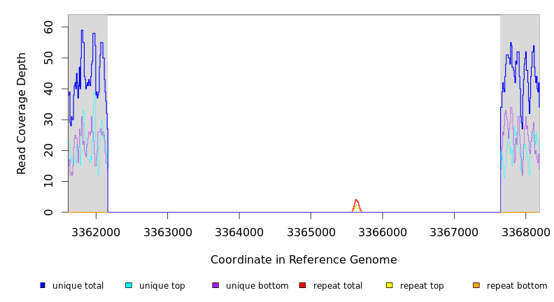 | seq id | start | end | size | ←reads | reads→ | gene | description | |||