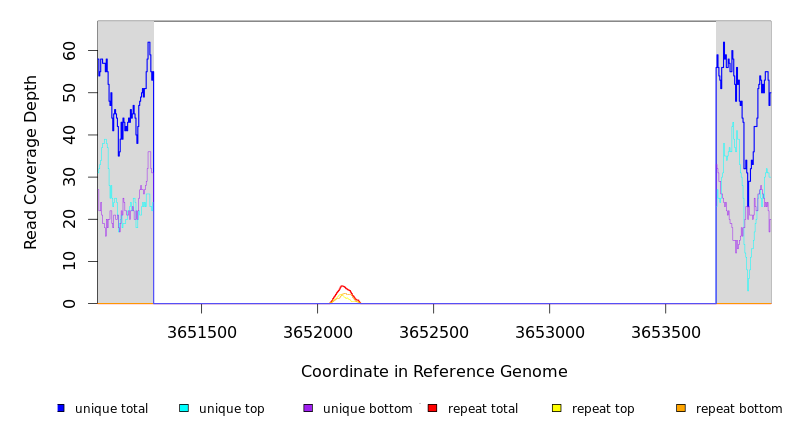| seq id | start | end | size | ←reads | reads→ | gene | description | |||