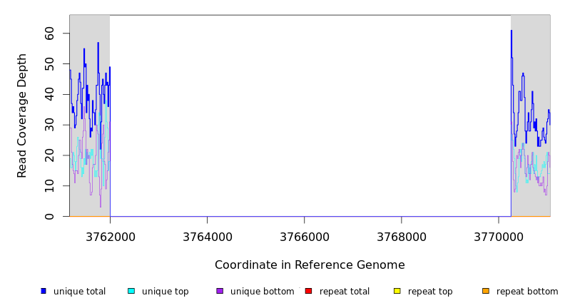 | seq id | start | end | size | ←reads | reads→ | gene | description | |||