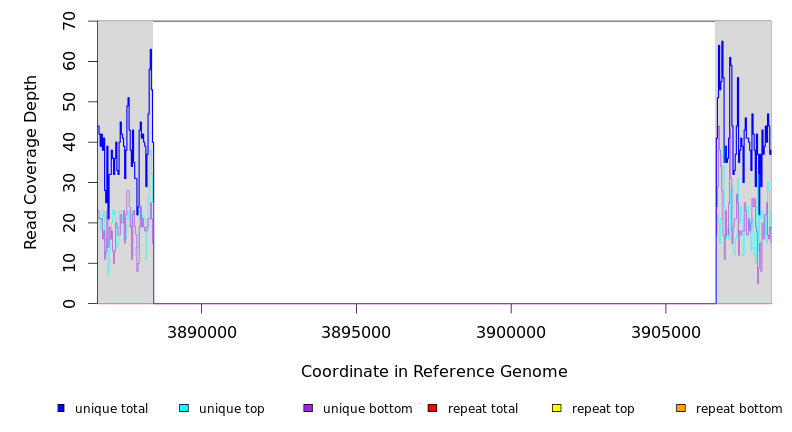| seq id | start | end | size | ←reads | reads→ | gene | description | |||