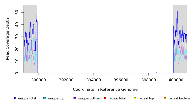 | seq id | start | end | size | ←reads | reads→ | gene | description | |||