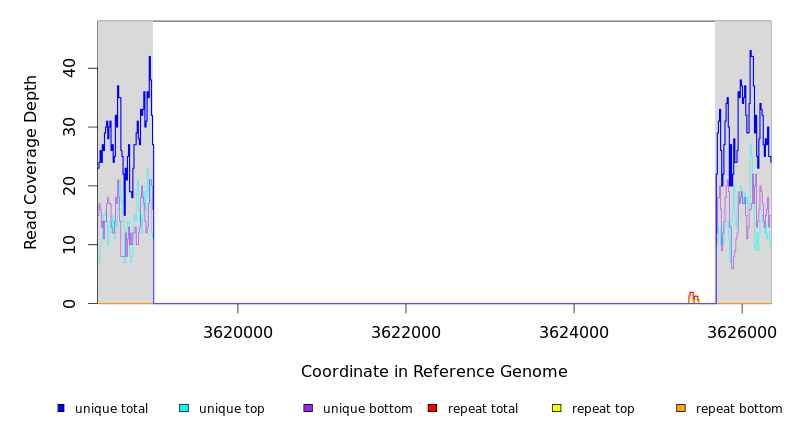 | seq id | start | end | size | ←reads | reads→ | gene | description | |||