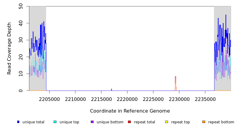 | seq id | start | end | size | ←reads | reads→ | gene | description | |||