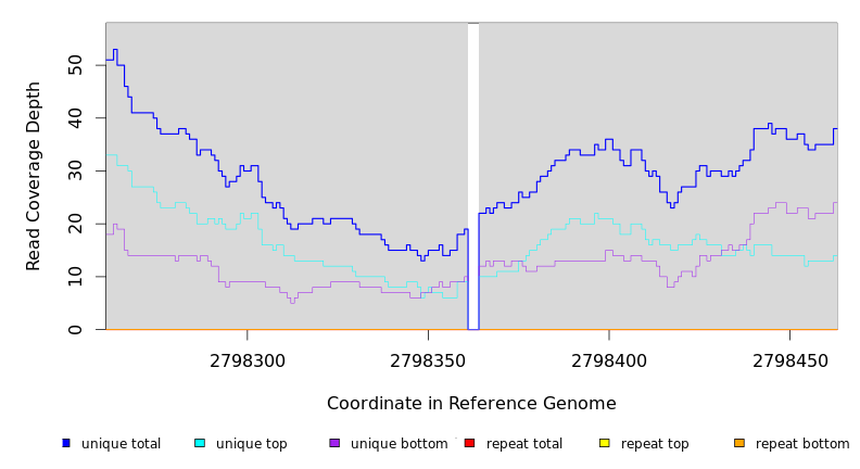 | seq id | start | end | size | ←reads | reads→ | gene | description | |||