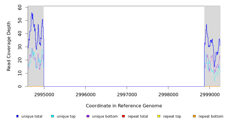 | seq id | start | end | size | ←reads | reads→ | gene | description | |||