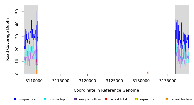 | seq id | start | end | size | ←reads | reads→ | gene | description | |||