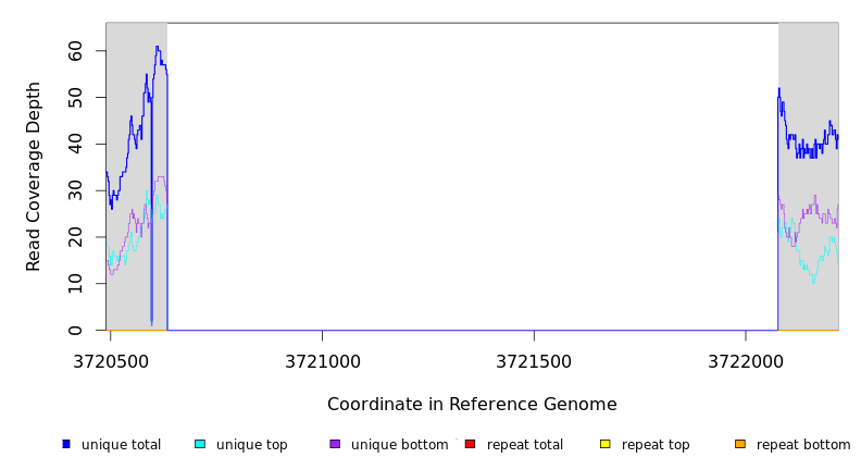| seq id | start | end | size | ←reads | reads→ | gene | description | |||