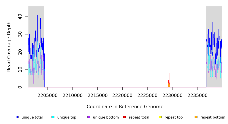 | seq id | start | end | size | ←reads | reads→ | gene | description | |||