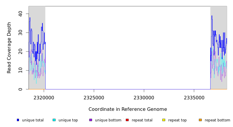| seq id | start | end | size | ←reads | reads→ | gene | description | |||