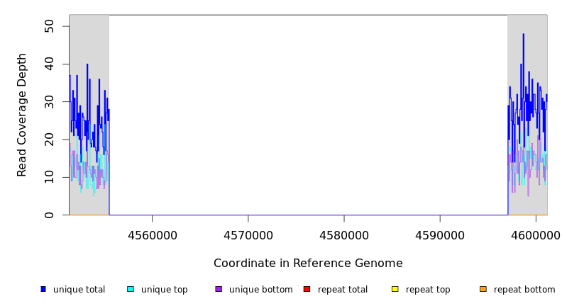 | seq id | start | end | size | ←reads | reads→ | gene | description | |||