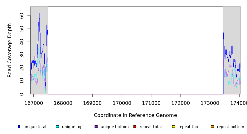 | seq id | start | end | size | ←reads | reads→ | gene | description | |||