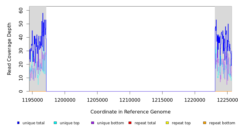 | seq id | start | end | size | ←reads | reads→ | gene | description | |||