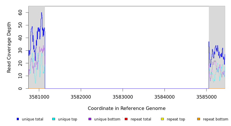 | seq id | start | end | size | ←reads | reads→ | gene | description | |||