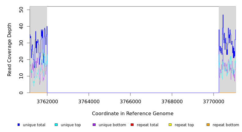 | seq id | start | end | size | ←reads | reads→ | gene | description | |||
