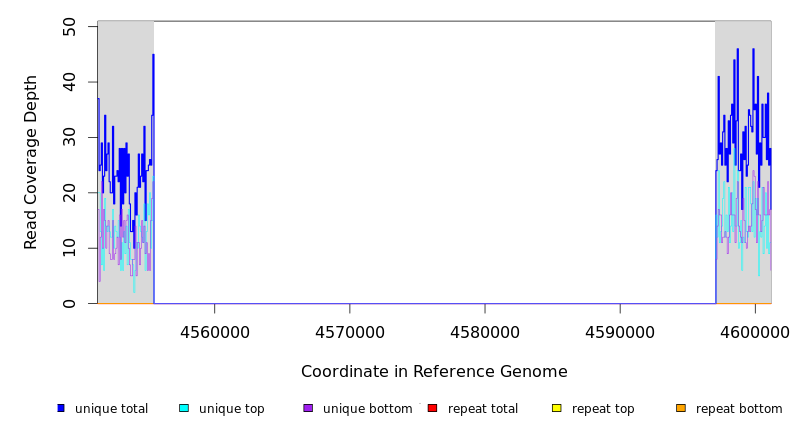 | seq id | start | end | size | ←reads | reads→ | gene | description | |||