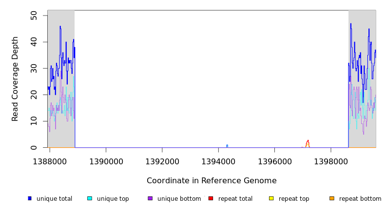 | seq id | start | end | size | ←reads | reads→ | gene | description | |||