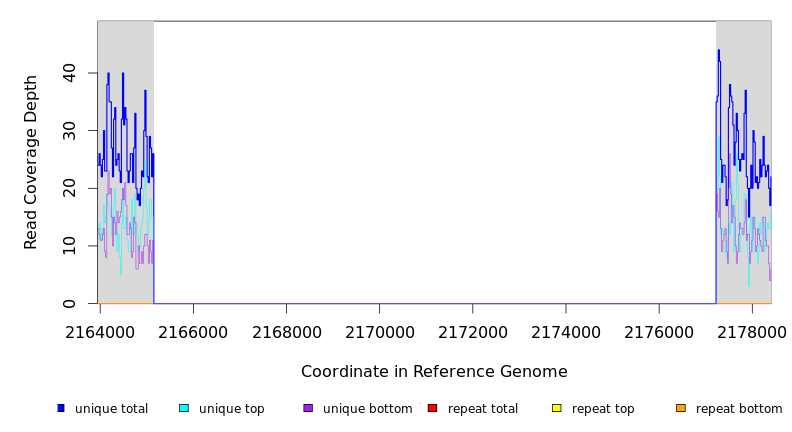 | seq id | start | end | size | ←reads | reads→ | gene | description | |||