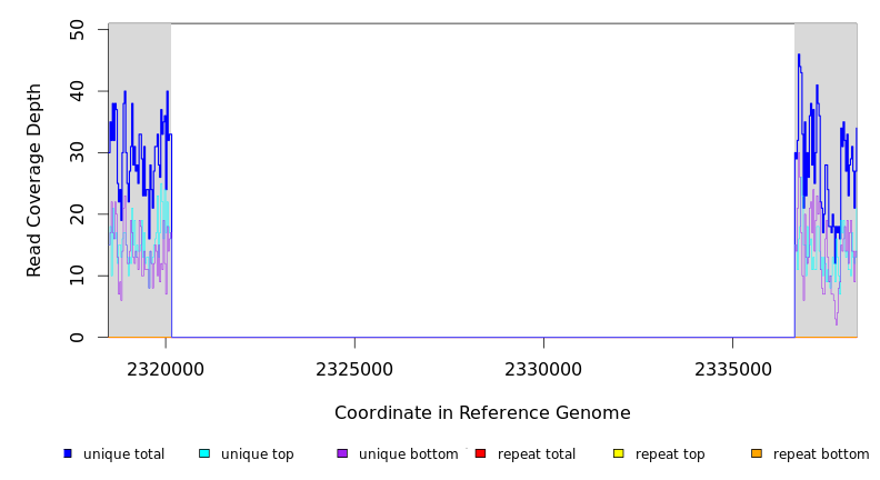 | seq id | start | end | size | ←reads | reads→ | gene | description | |||
