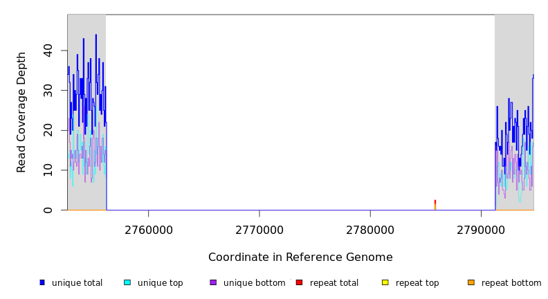 | seq id | start | end | size | ←reads | reads→ | gene | description | |||