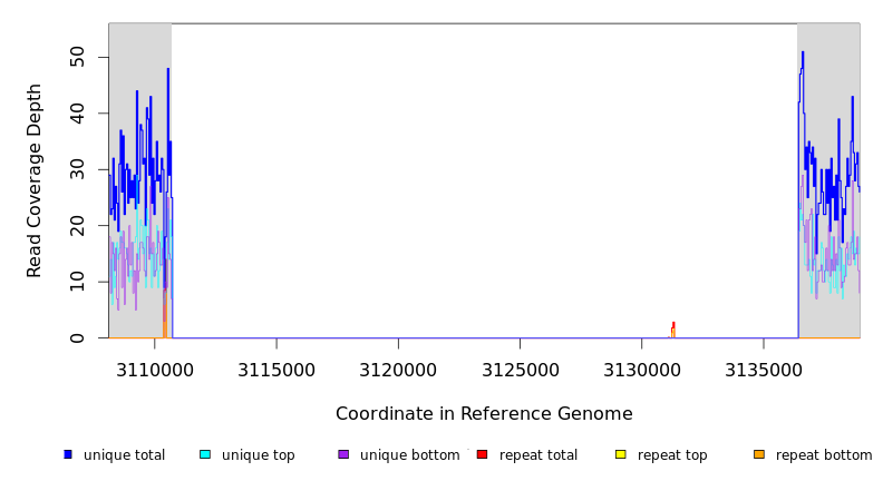 | seq id | start | end | size | ←reads | reads→ | gene | description | |||