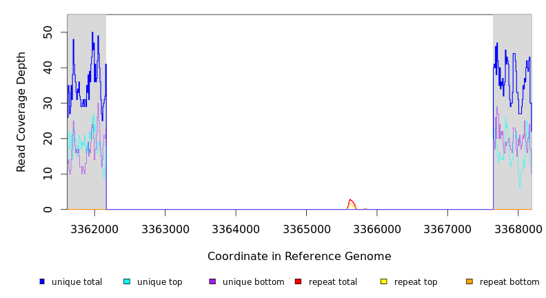 | seq id | start | end | size | ←reads | reads→ | gene | description | |||