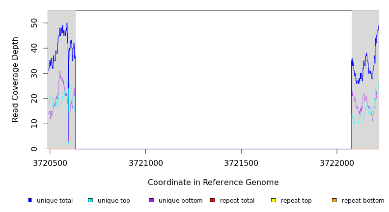 | seq id | start | end | size | ←reads | reads→ | gene | description | |||