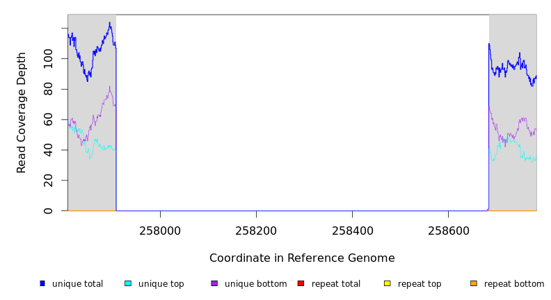 | seq id | start | end | size | ←reads | reads→ | gene | description | |||