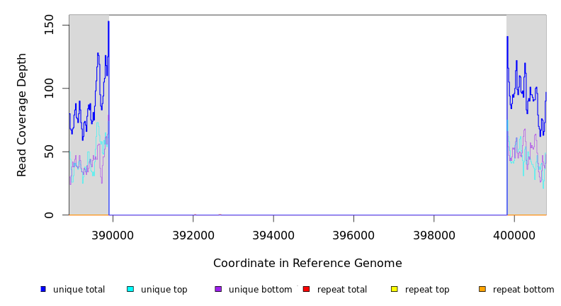 | seq id | start | end | size | ←reads | reads→ | gene | description | |||
