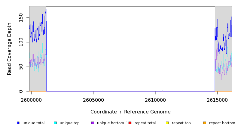 | seq id | start | end | size | ←reads | reads→ | gene | description | |||