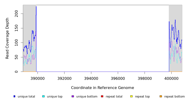 | seq id | start | end | size | ←reads | reads→ | gene | description | |||