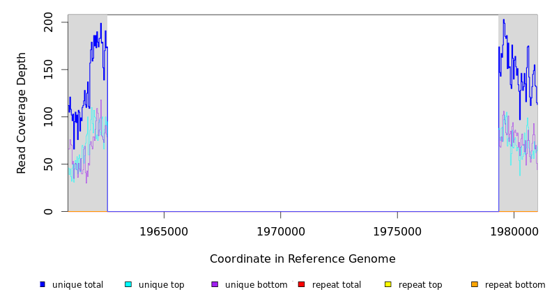 | seq id | start | end | size | ←reads | reads→ | gene | description | |||