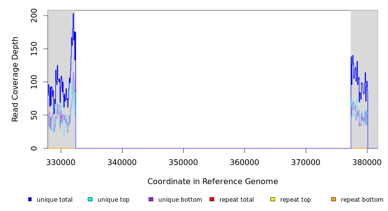 | seq id | start | end | size | ←reads | reads→ | gene | description | |||