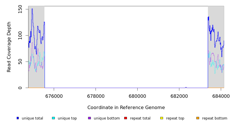 | seq id | start | end | size | ←reads | reads→ | gene | description | |||