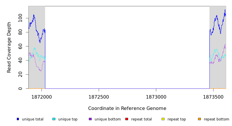 | seq id | start | end | size | ←reads | reads→ | gene | description | |||