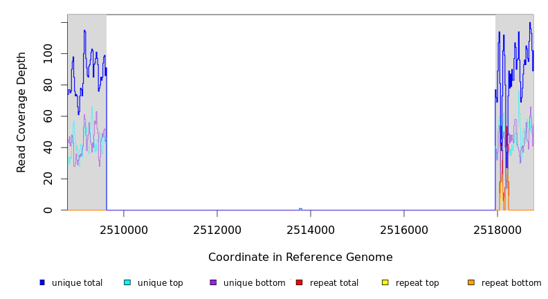 | seq id | start | end | size | ←reads | reads→ | gene | description | |||