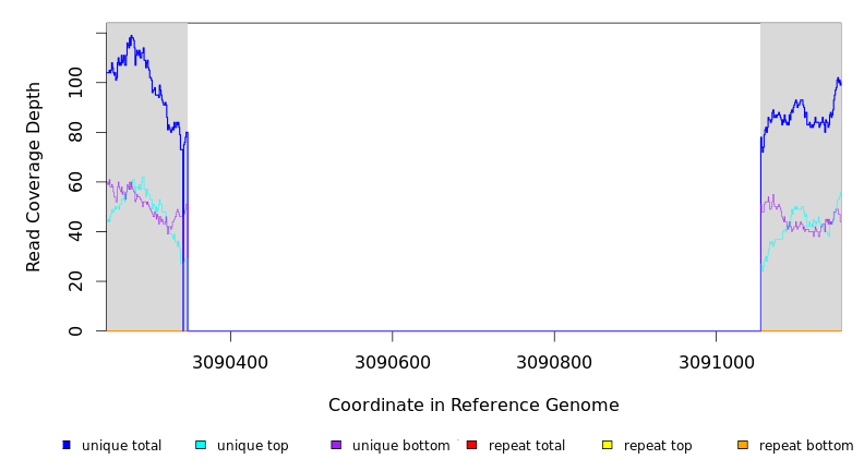 | seq id | start | end | size | ←reads | reads→ | gene | description | |||