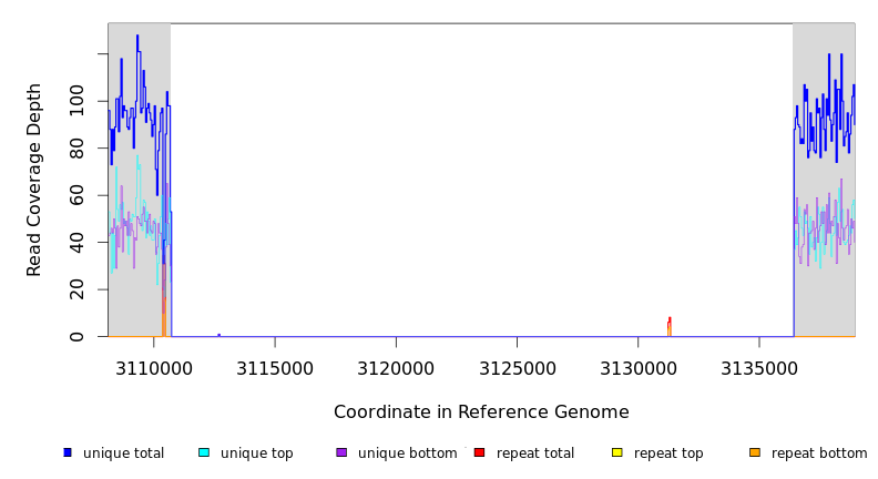 | seq id | start | end | size | ←reads | reads→ | gene | description | |||