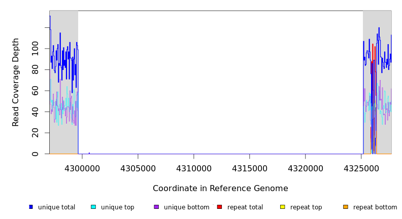 | seq id | start | end | size | ←reads | reads→ | gene | description | |||