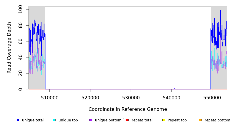| seq id | start | end | size | ←reads | reads→ | gene | description | |||