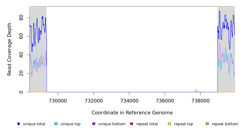| seq id | start | end | size | ←reads | reads→ | gene | description | |||