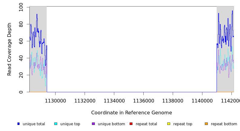 | seq id | start | end | size | ←reads | reads→ | gene | description | |||