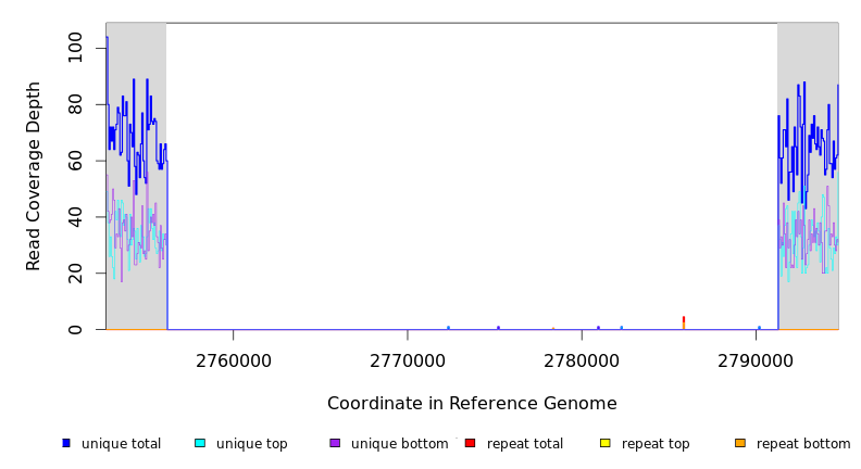 | seq id | start | end | size | ←reads | reads→ | gene | description | |||