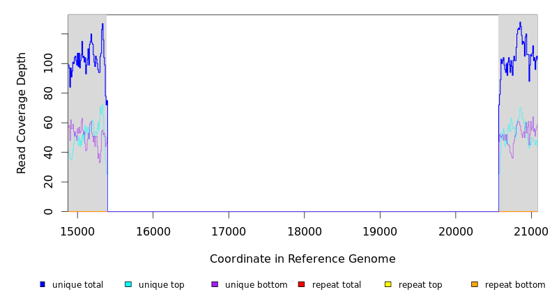 | seq id | start | end | size | ←reads | reads→ | gene | description | |||